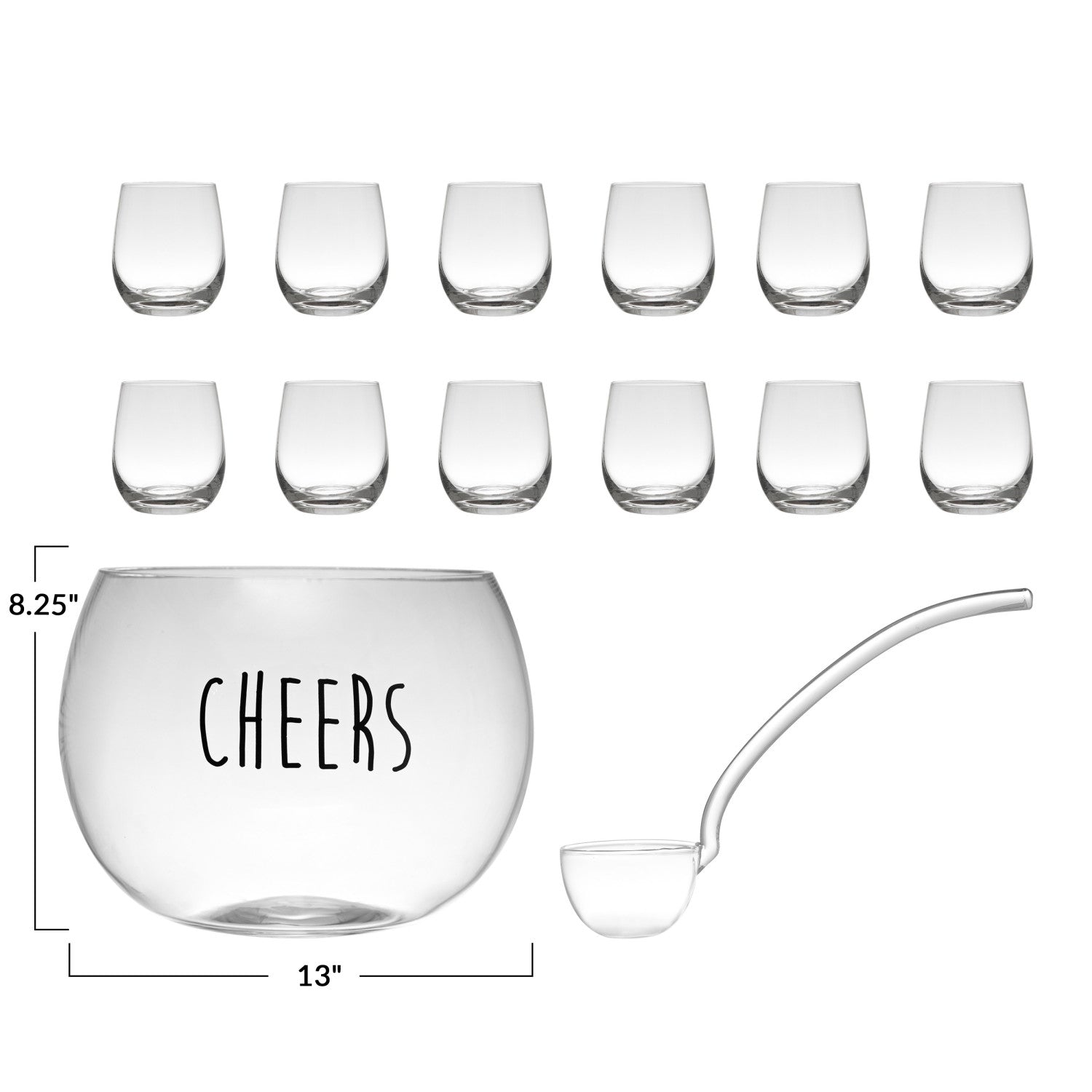 Glass Punch Bowl w/. Ladle & 12 glasses, set of 14 -POWELL PICK-UP