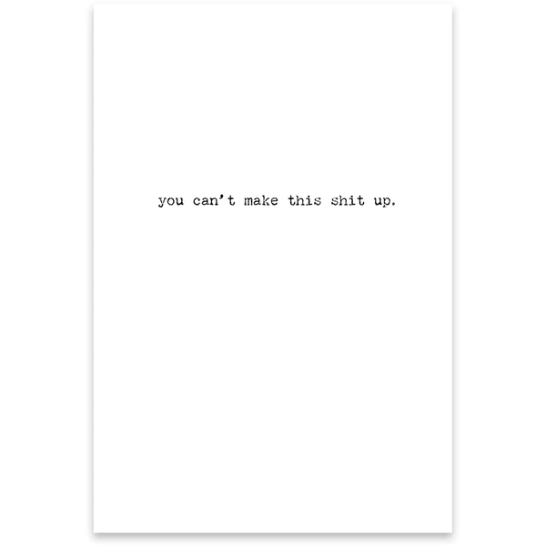 A humorous greeting card from our Trash Talk by Annie Collection features a vintage photograph with "We Really Need Our Own Reality Show…" sentiment on the outside, and "You Can't Make This Shit Up." sentiment on the inside.